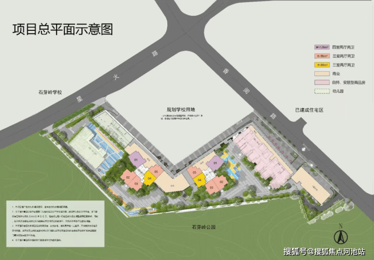 项目为全优势朝向,西南/东南朝向,且都能看到石芽岭公园景观。