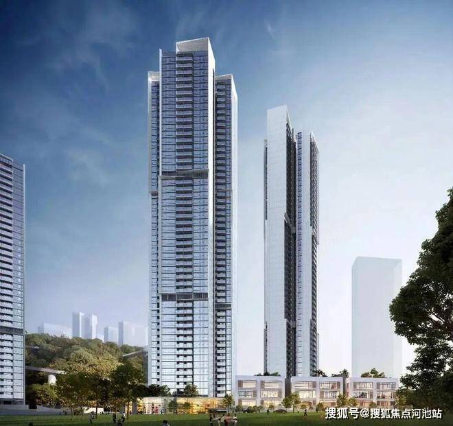 先锋立面:沿袭精工美学品质标准,融合"山林、扬帆、峰汇"元素,打造时尚"城市天际线"。
