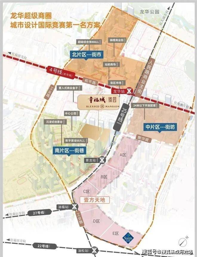 2022 年,龙华商业中心五大片区(北、中、东、南一、南二)均明确实施主体,开发建设稳步推进: