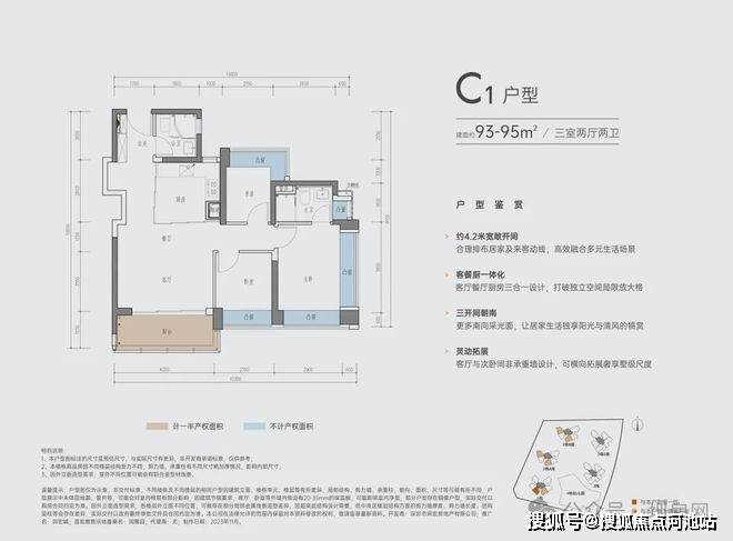 C-1户型 | 建面约93-95㎡三室两厅两卫