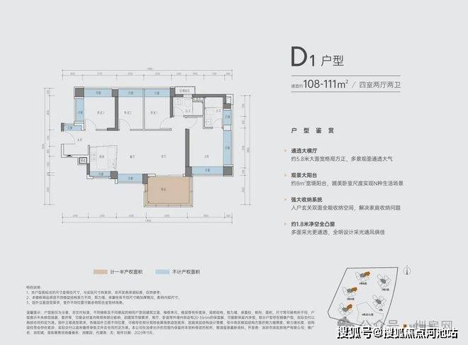 D-1户型 | 建面约108-111㎡四室两厅两卫