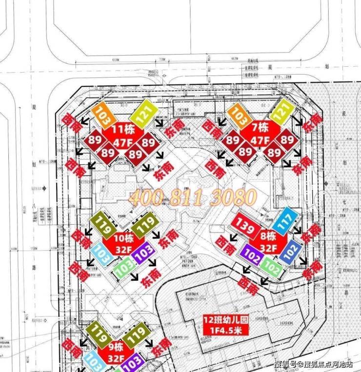 西区:占地2.2万㎡,容积率5.16,涵盖住宅、商业、教育及基础设施。建筑包括:7栋47层3梯6户;12栋46层3梯6户;8栋32层2梯5户;10/11栋32层2梯6户;9栋为幼儿园。