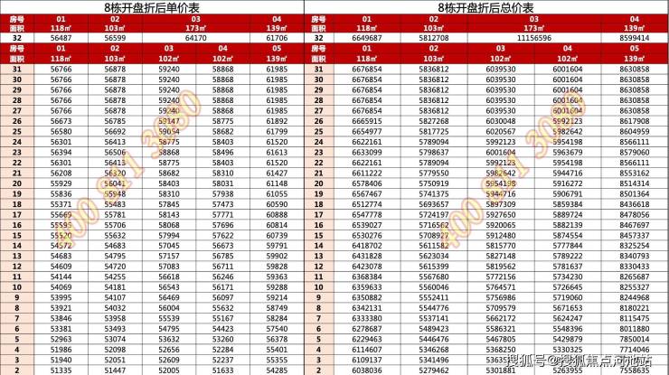 🔴8栋新品主力楼层折扣价: