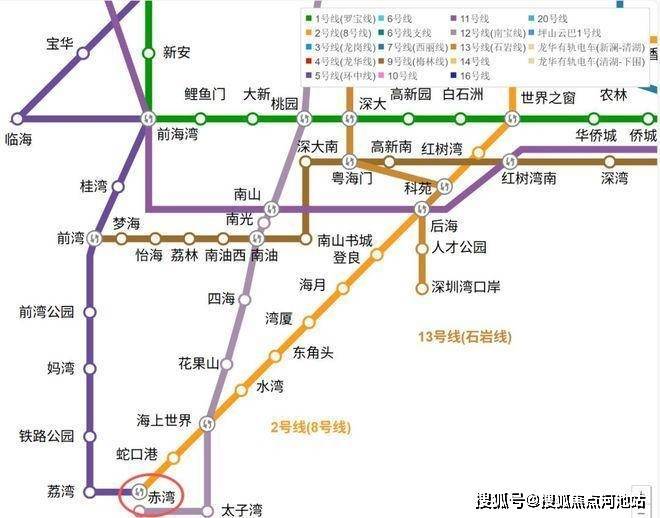 轨道交通:距离2号线/5号线“赤湾站”约500米,步行约8-10分钟,5号线串联前海、宝中、西丽留仙洞、深圳北站,2号线被誉为深圳豪宅线,串联太子湾、深圳湾、红树湾、华侨城、香蜜湖、福田中心等核心地段