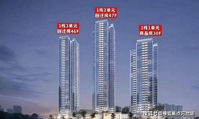 玖珑瑧境(1期),总占地面积约1.41万㎡,总建筑面积约11.03万㎡,其中计容建筑面积约8.15万㎡,容积率5.2,绿化率40.03%,共由3栋住宅组成,其中1栋1单元商品房30F,1栋2单元回迁房47F,1栋3单元回迁房46F。