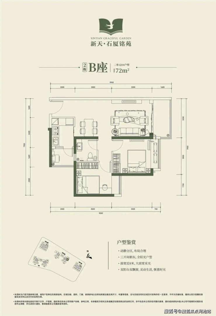 2栋B座二单元04、05户型:面积约为72-74㎡的2房2厅1卫。