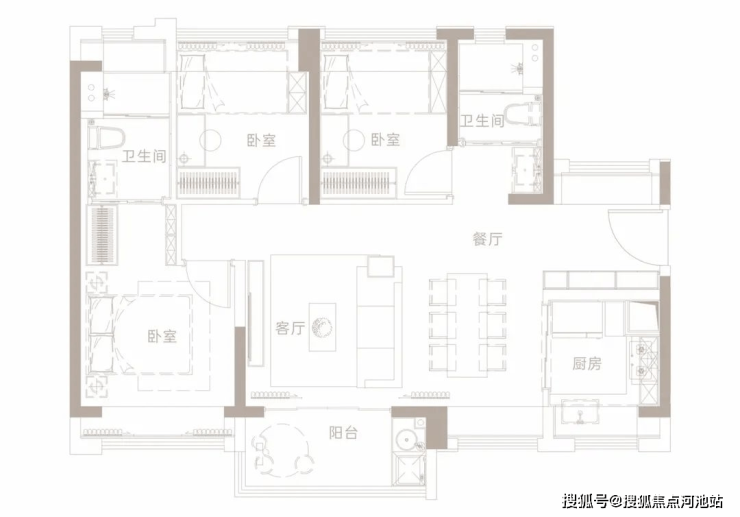 125㎡奢阔大平层,独梯入户,营造归家仪式感南北通透三面采光,超长横厅享南向观景阳台