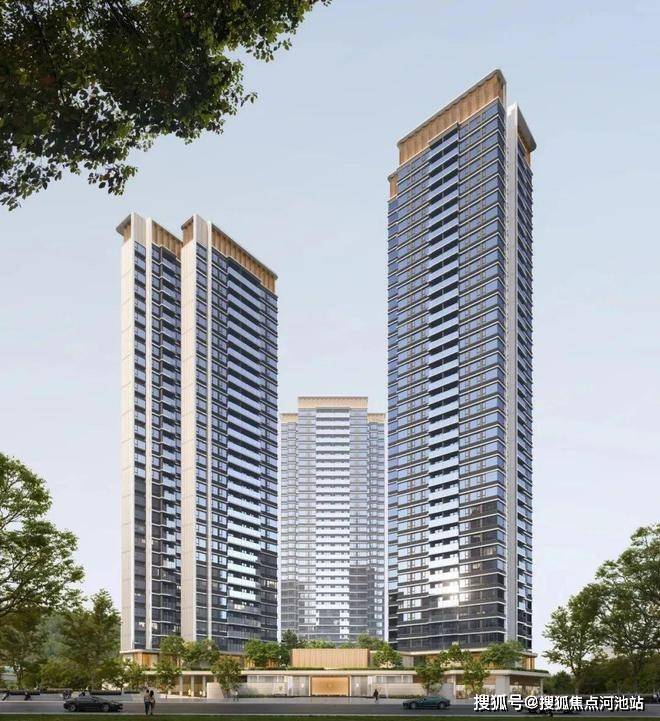 共由5栋总高31-38层的住宅组成,其中1栋1单元住宅33F,1栋2/3单元住宅31F,1栋4单元住宅38F,1栋5单元公租房32F,小区地下车库配建有公交首末站。