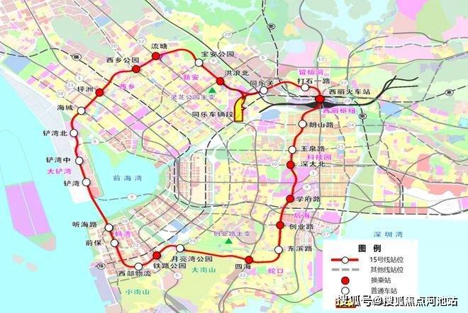 “深圳一环”15号线在建中,其中通港路站(原“西部物流站”)距离项目约500米(百度地图测距),将在2028年开通。附近还规划了24号线、28号线小南山西站交汇站。
