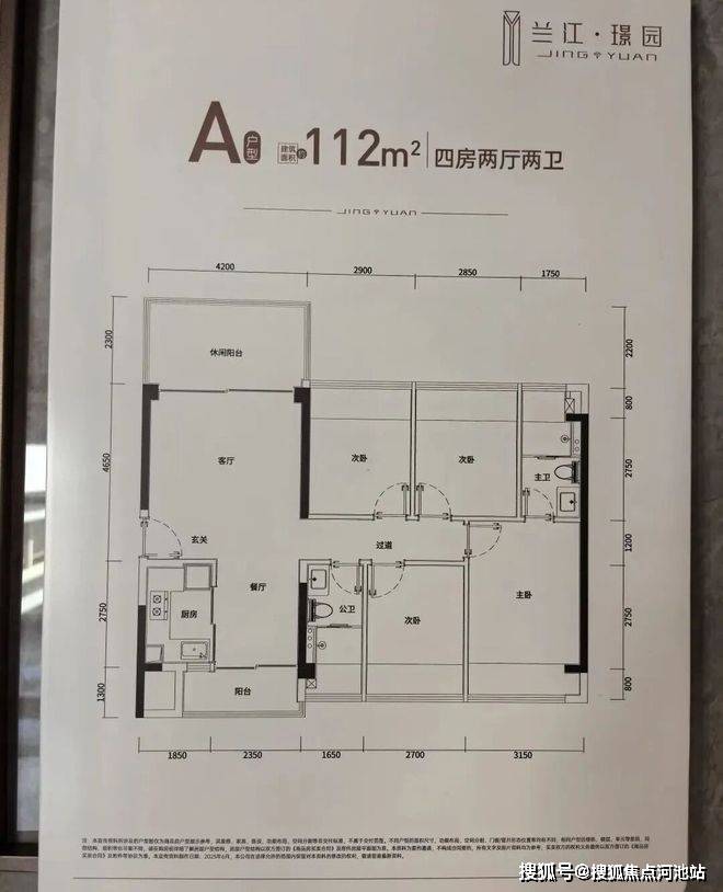 112m²的4房2厅2卫,设计的竖厅南北通透格局,进门入户玄关,客厅4.2米开间,客餐厅分离化设计,南北双阳台,四开间朝南,动静分区,分别做到了主卧14.38m²/次卧11.58m²/次卧9.4m²/次卧7.62m²(实测面积,去掉墙体),U型厨房,卫生间三段式干湿分离,得房率约78.8%(不含赠送),客厅大阳台9.66m²西北朝向,看小区园林或东北师范学校。套内面积87.83m²+飘窗12m²+阳台6.36m²=实际套内106.19m²,加上赠送面积后得房率约94.72%。