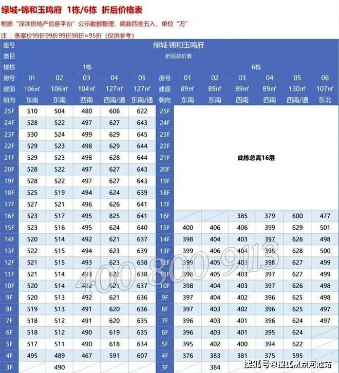 折后价格表(仅供参考,看房预约还能更便宜!)