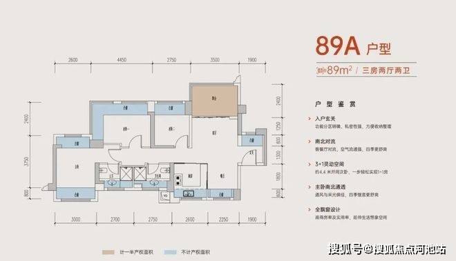 89㎡的3房2卫,折后总价270-305万/套,折后单价2.98-3.41万/㎡。