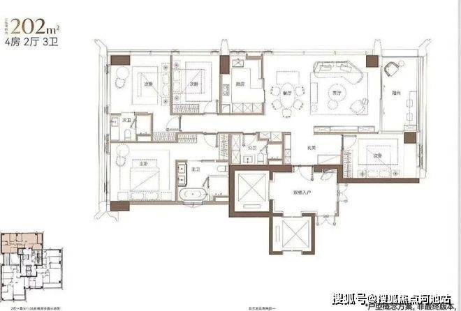 202㎡户型:4-8楼:3300-3400万——10-25楼:3500-3600万——25-35楼:3600万