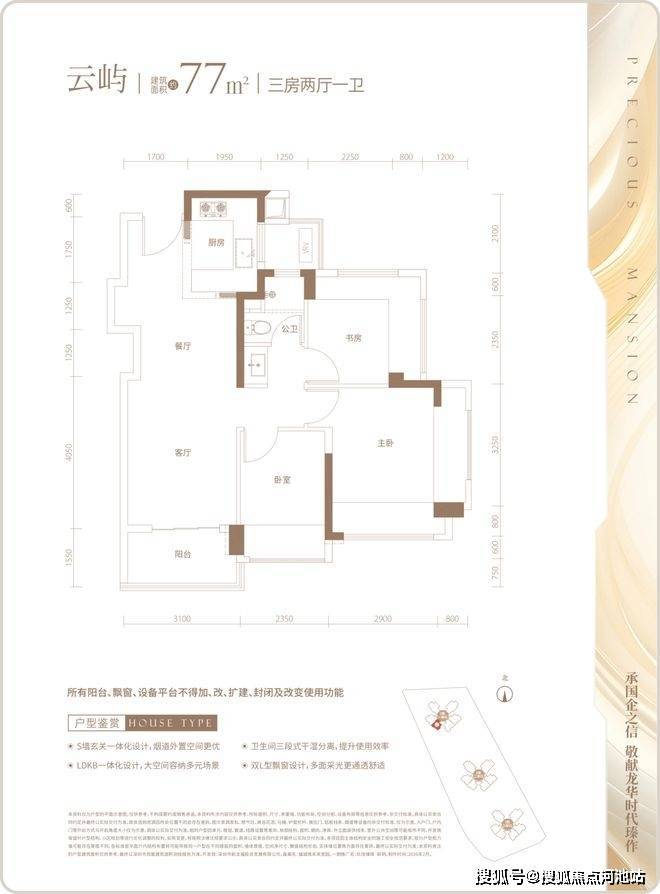 ②新规户型,格局和功能实用且无明显槽点,使用率97%-105%,77-132㎡三至四房都有,能适配不同家庭的多元化居住需求。