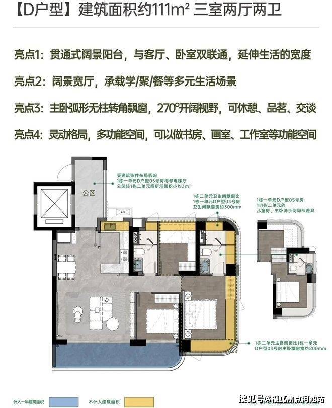 飘窗+阳台革命性拓展,使用率逼近100%(含电梯厅),秒杀市场80%竞品。