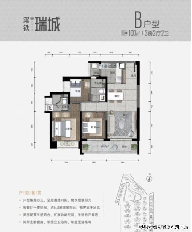 在户型设计上,即将 推出的 建面约96-100㎡三房, 有四个户型, 户型格局大体一致,均为竖厅设计,客厅开间3.5米,整体空间大小偏舒适型; 主卧套房设计,自带衣帽间和独立卫生间,舒适度与私密性兼 具。