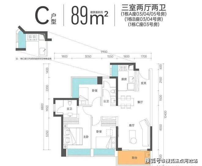 89平米3房总价171万左右