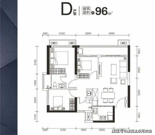 96㎡ 三房 约 210~220 万,首付低至63万