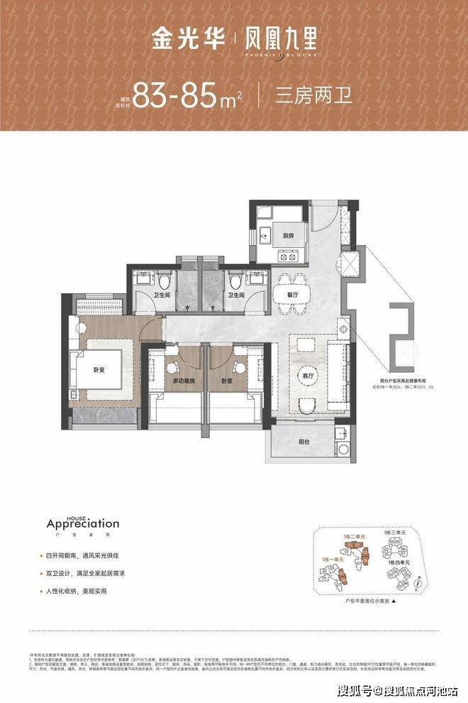 龙岗平湖新楼盘金光华凤凰九里·慧苑开盘首推1栋1/3单元,共430套房源,面积68㎡的2房1卫,83-85㎡的3房2卫,106㎡的4房2卫户型。