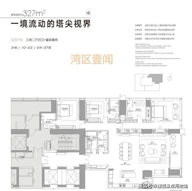 项目首推T3栋约123套面积304-327--402-570-1032㎡户型;