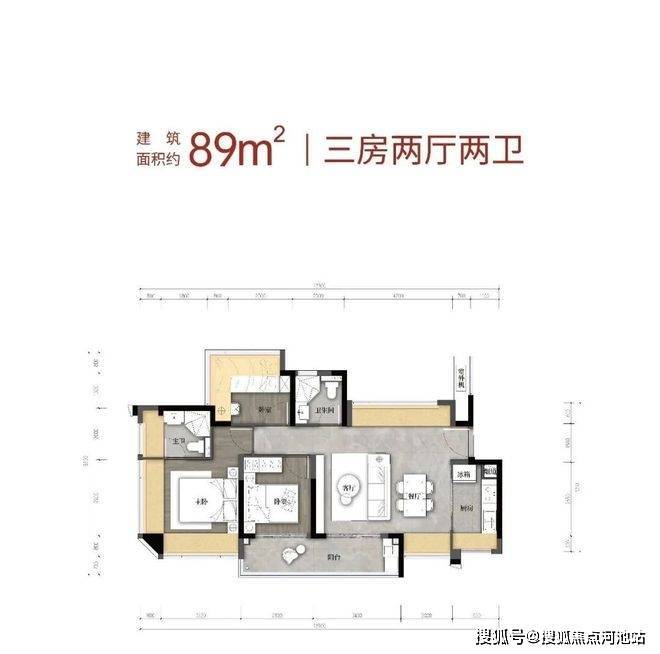 89㎡横厅:总价331-352万,单价3.72-3.96万/㎡;