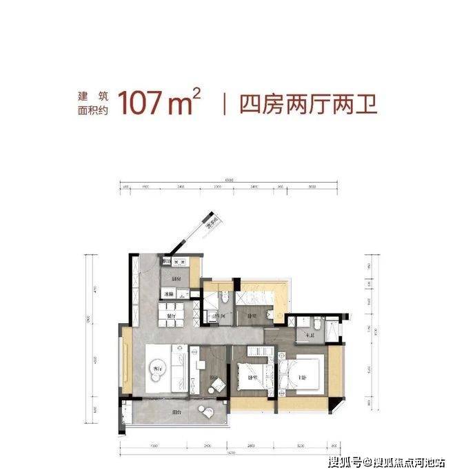 107㎡4房:总价425-460万,单价3.97-4.30万/㎡。