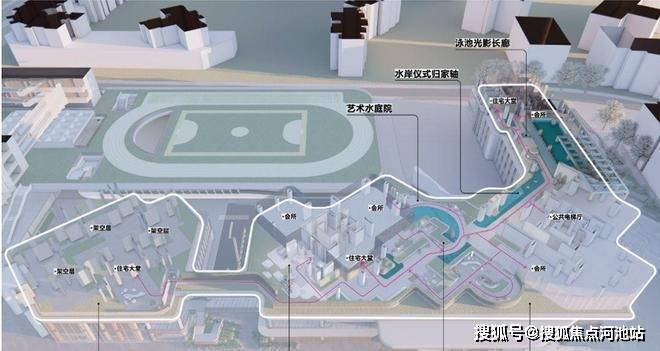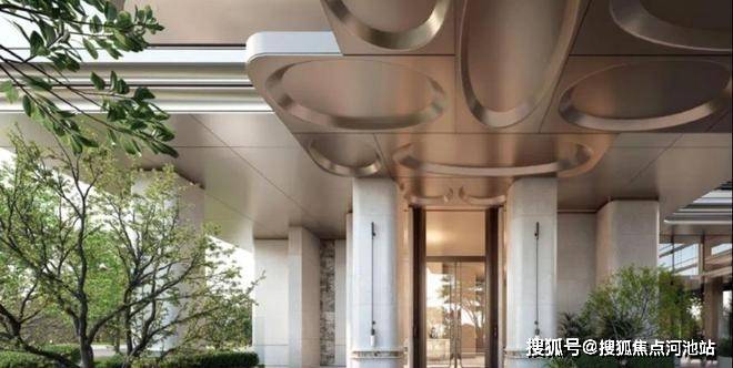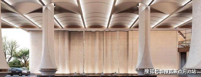 「后海招商玺」车行大门做了殿堂级落客区,设有天幕和水景,非常具备归家仪式感。