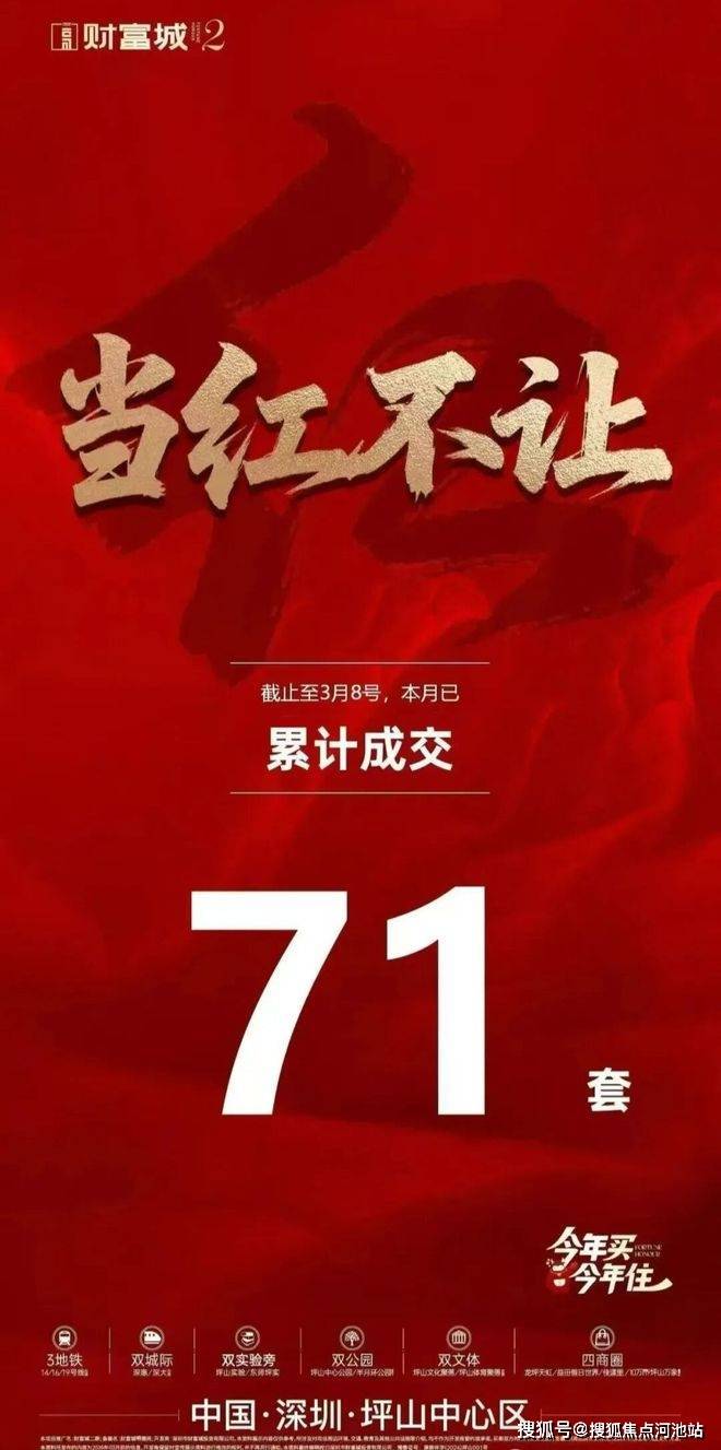 财富城2期所在的区位是整个坪山最核心的地段,汇聚了高铁+14/16号线双地铁+坪山实验学校+坪山中心公园+坪山天虹商场+坪山区政府+坪山体育中心+坪山图书馆,文艺馆等等,所有的市政配套基本都集中在这里,并且财富城2期也是该核心区域内唯一在售的新盘。