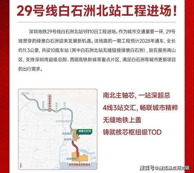 29号线白石洲北站工程进场,绿景白石洲雄踞南北主轴芯 代言深圳高度。