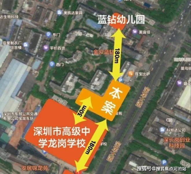 项目紧挨着深圳高级中学龙岗学校,北侧是金众蓝钻,周边有占地25万㎡的龙湖公园,龙岗骨科医院,14号地铁线“宝龙站”距离约1.9公里,还有东部过境高速即将开通。
