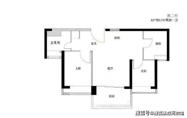 46-48㎡ | 端头通燃气一房一厅 | 独立厨房