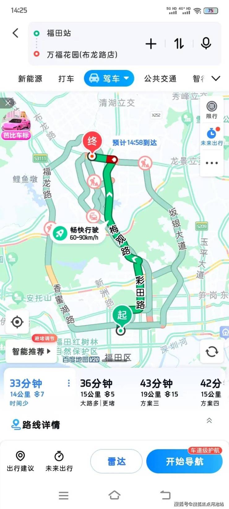 自驾出行可选择:工业路、民治大道、布龙路、龙华大道、4条主干道及梅观高速1条快速路,开车前往福田地铁站仅需半小时