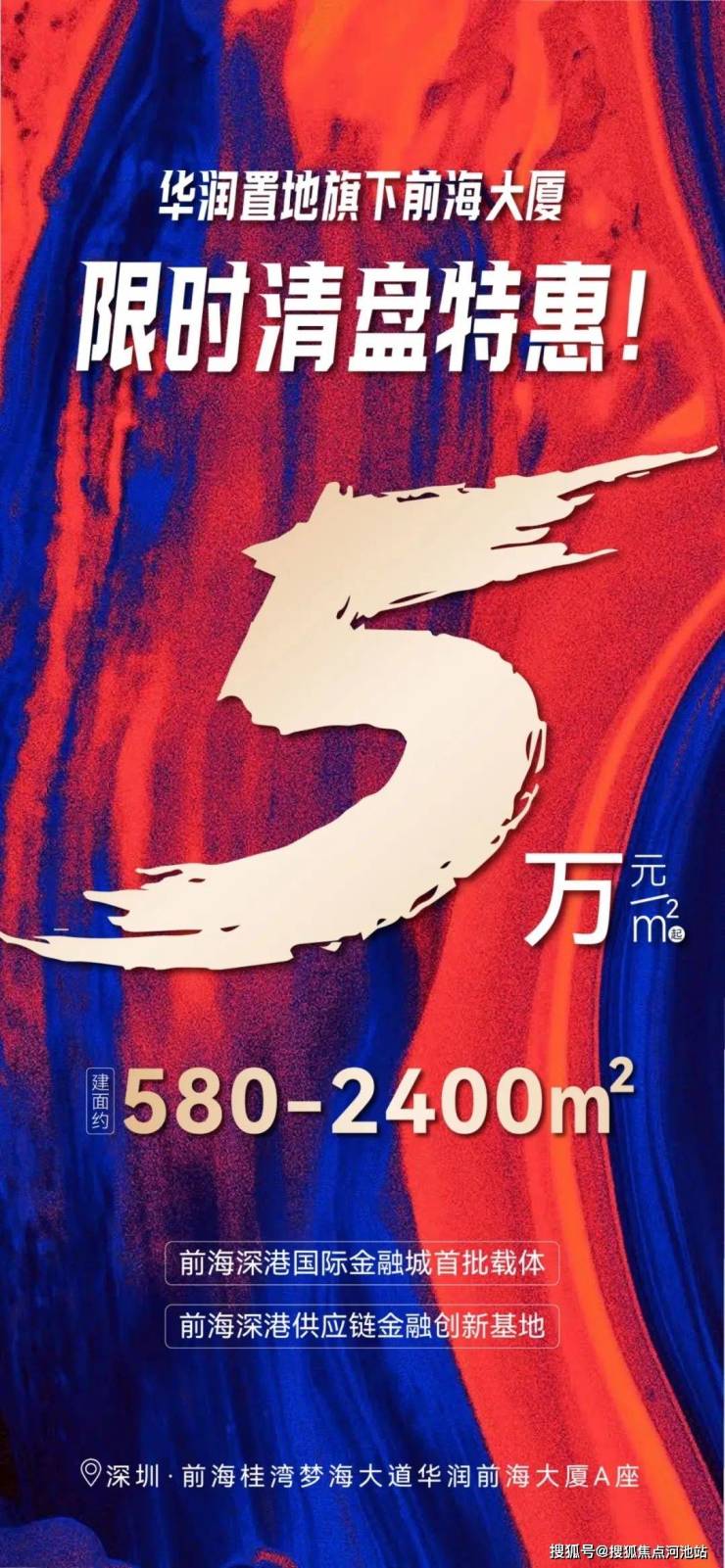 【华润前海大厦A座】出售面积590-2400平米,均价8.5万元/平米起;央企华润开发,品质保证,前海桂湾核心位置、三轨交汇(1_5_11号线);地址:深圳前海梦海大道与桂湾四路交汇处(鲤鱼门地铁站)。