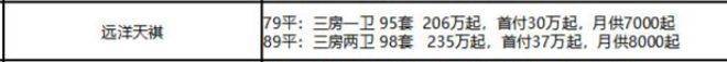 79㎡三房一卫:总价190万起,南向或南北通透设计,得房率约73%-80%;