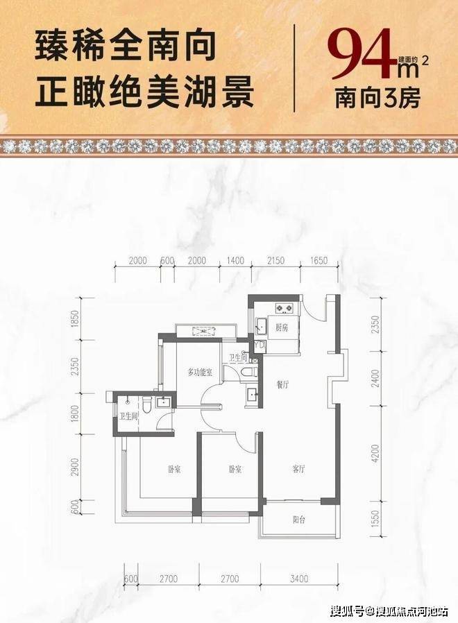 约94㎡南向性价三房:折后单价4.52-4.79万/㎡,总价427-452万