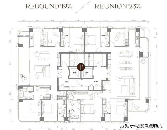 本次推出总共42套,建筑面积约197/237㎡2个面积产品:
