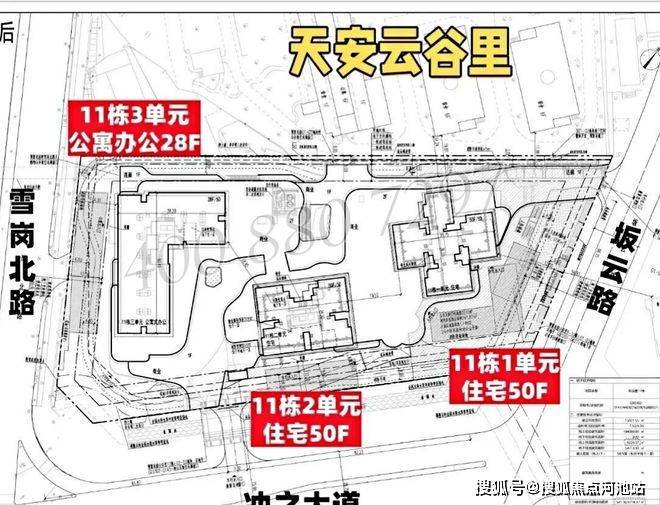 天安云谷里01-05地块,总占地面积约1.5万㎡,总建筑面积约16.5万㎡,计容建筑面积约11.1万㎡,容积率7.24,绿化率40%,共由2栋总高50层住宅组成,另外配建1栋28层公寓办公,其中11栋1/2单元住宅50F,配建约1.6万㎡商业。