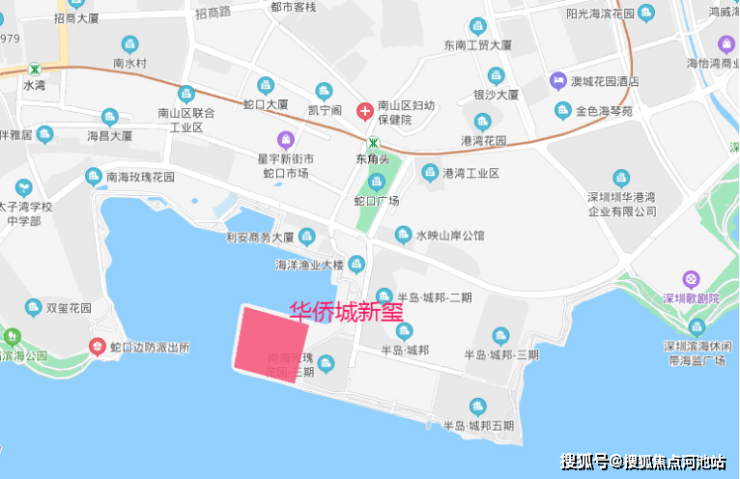 华侨城新玺位于南山区蛇口街道湾厦路最南端,距2号线东角头站约900米,南、西、北三面临海。
