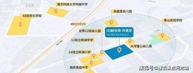 项目周边有南方科技大学附属中学、宝安区桥头学校、立新湖外国语学校等学府,未来还将配建一所12班幼儿园和一所36班九年制学校。