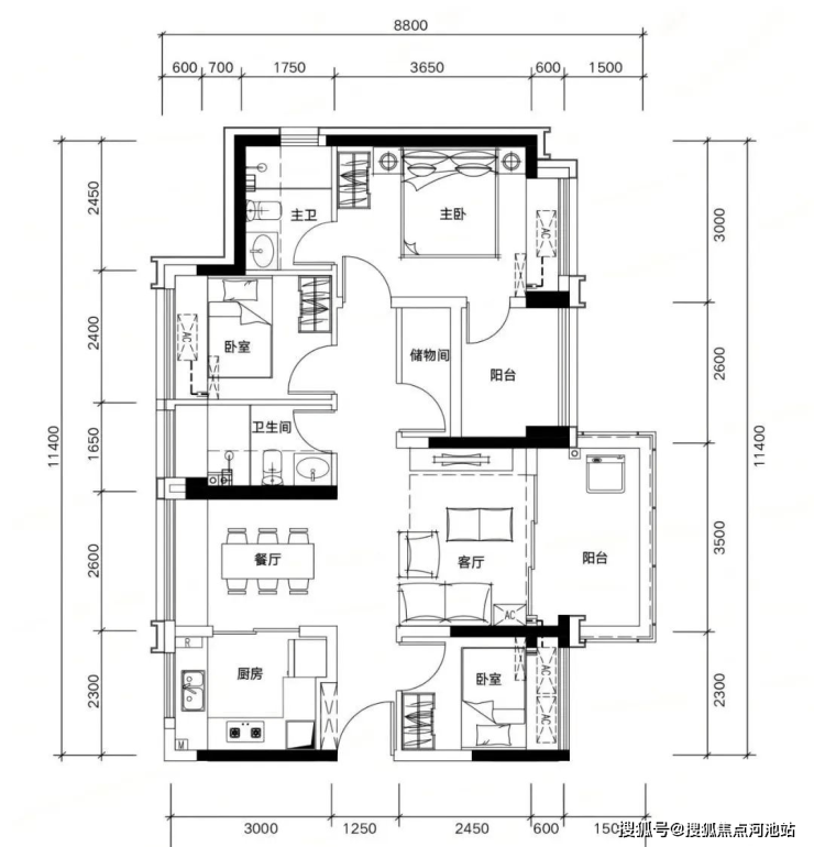 88㎡的3房2厅2卫,折后总价311-393万/套,单价3.5-4.46万/㎡。