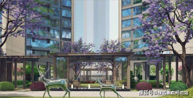 主入口采用不锈钢元素,让建筑在岁月洗礼中历久弥新;类玻璃幕墙住宅立面,展现高档、前沿的社区风貌;住宅塔楼山墙面选用进口干挂铝锥芯板,体现建筑挺拔感,提升住宅品质感。