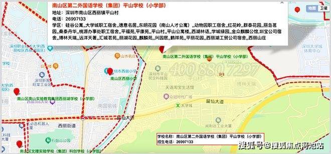中小学:小学学区划分在南山第二外国语学校(集团)平山小学,中学学区划分在深圳大学城丽湖实验学校初中部,周边学校有西丽小学、南山文理实验学校,但整体教育质量相对一般。