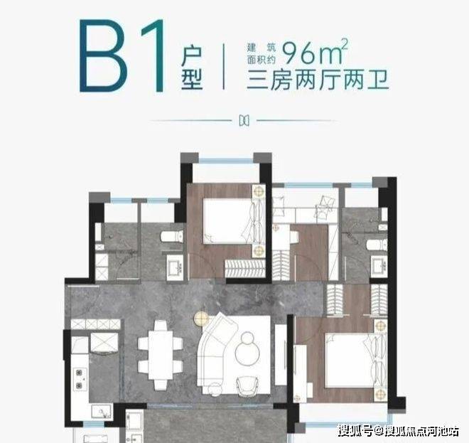 空间与功能:该户型得房率约 81%,空间利用率高。主卧面积达 12.5㎡,配有独立卫浴和步入式衣帽间,两个次卧分别约 8.5㎡和 7.2㎡,且均带飘窗,能满足家庭成员的居住舒适度。同时全屋科学布局 8 大收纳空间,卫生间采用三分离设计,马桶区、洗漱台、淋浴间完全隔开,可满足多成员同时使用,适配有孩子的三口之家。