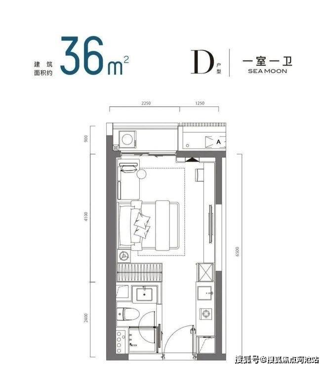 36㎡左右的一房D户型 备案总价约:232-277万