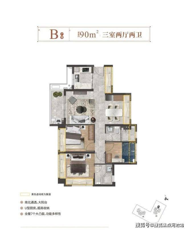 【户型】76㎡3房2厅1卫、90㎡3房2厅2卫
