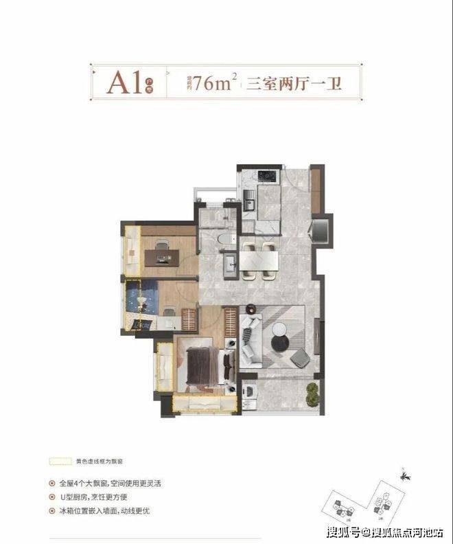 ——建面约76㎡3房2厅1卫