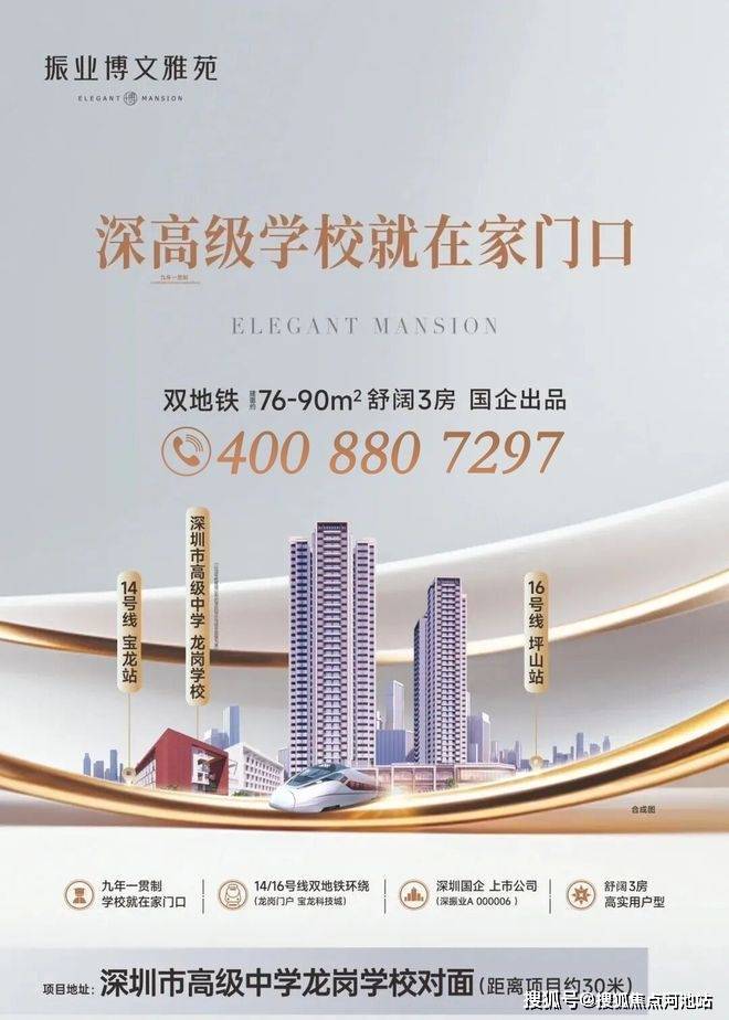 本楼盘位于深圳市高级中学龙岗学校对面,宝龙科技城 · 东部高铁新城双城交汇,由国企振业集团开发,建面约76-90㎡舒阔3房 准现房 。其中76平三房两厅一卫折后总价约227万~247万;90平三房两厅两卫折后约292万~307万。