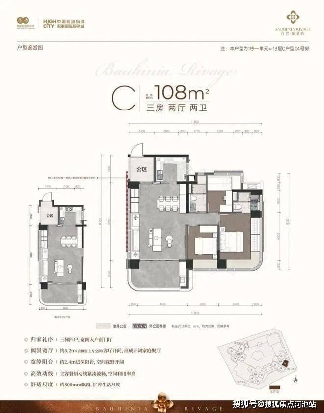 紧邻湾啟紫荆府,共享所有的配套。也是3栋,湾啟紫荆府是4梯5户,紫荆屿是3梯4户,都是新规产品。