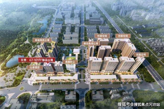 约56万㎡综合体大城,集山景酒店、高端写字楼、 旗舰商业、瞰山公寓为一体的大型城市综合体,打造凤凰山麓封面标杆