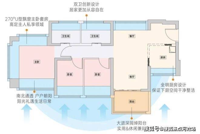 主卧三面飘窗设计,放眼深圳甚至全国市场,都是豪宅的基础操作。而约82㎡户型的三面阔景飘窗主卧,给你豪宅版的主人生活。更多飘窗的设计,不仅增加了主人空间衣物、用品的摆放位置,同时,可将飘窗改造成阅读角、工作台、小型咖啡台;你可以喝着下午茶,欣赏着繁盛的园景;也可倚着飘窗阅读,任阳光随着时间的变化,在书上起舞。